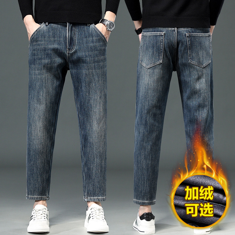 Главная страница > Осенний и зимний бархатный высококачественный ностальгический ретро-девятиочностный джинсы мужская приливная бренд свободного эластичного микро-шаровары брюки