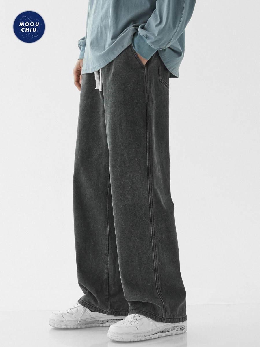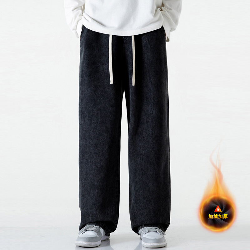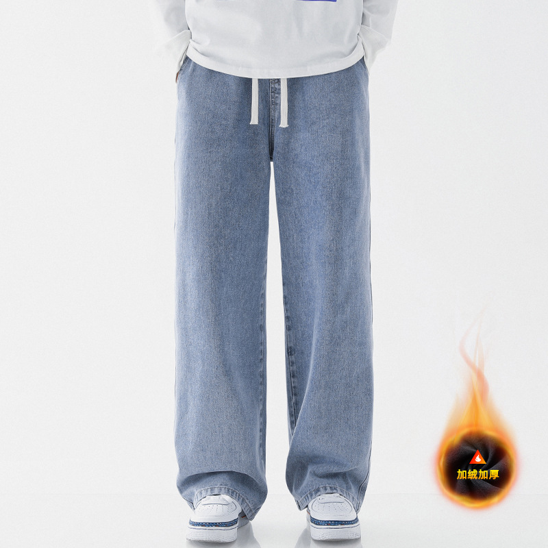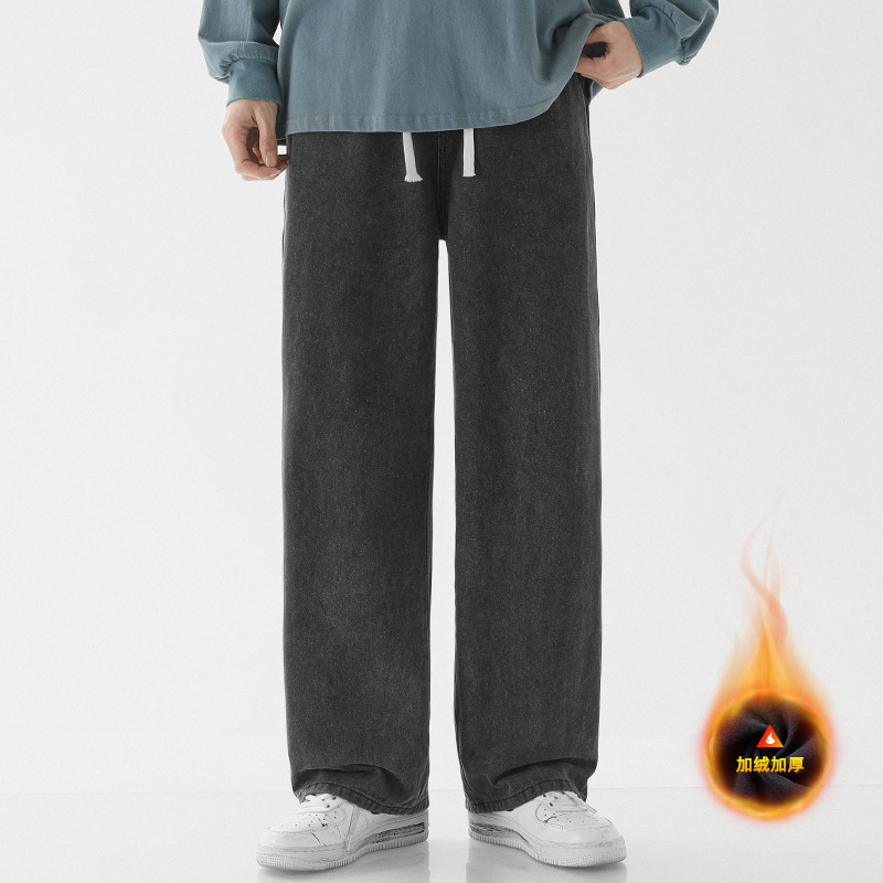 Главная страница > Мужская одежда Muqiu | Мужские джинсы Xintang на флисовой подкладке, утолщенные, свободные, прямого кроя, с эластичным поясом, повседневные широкие брюки в стиле стритстайл