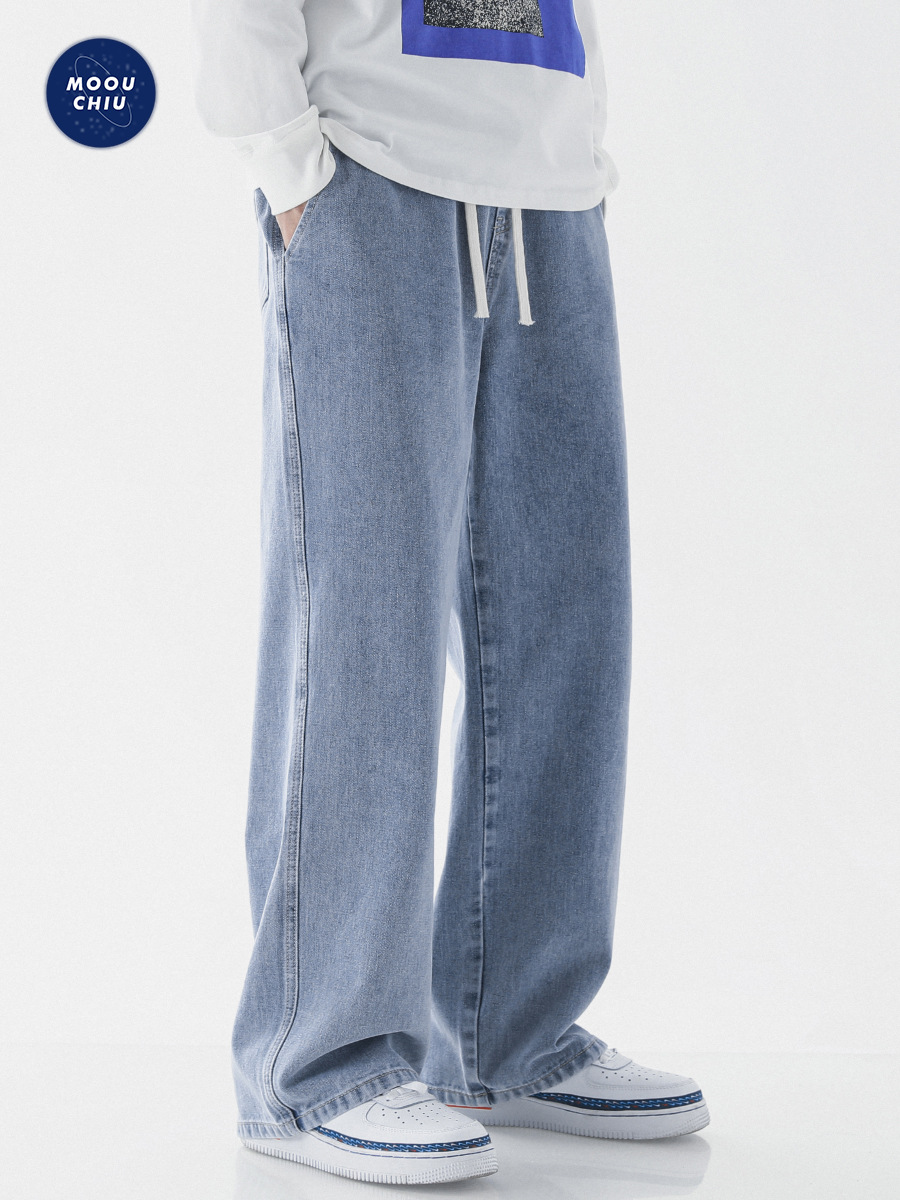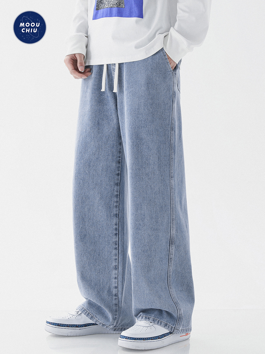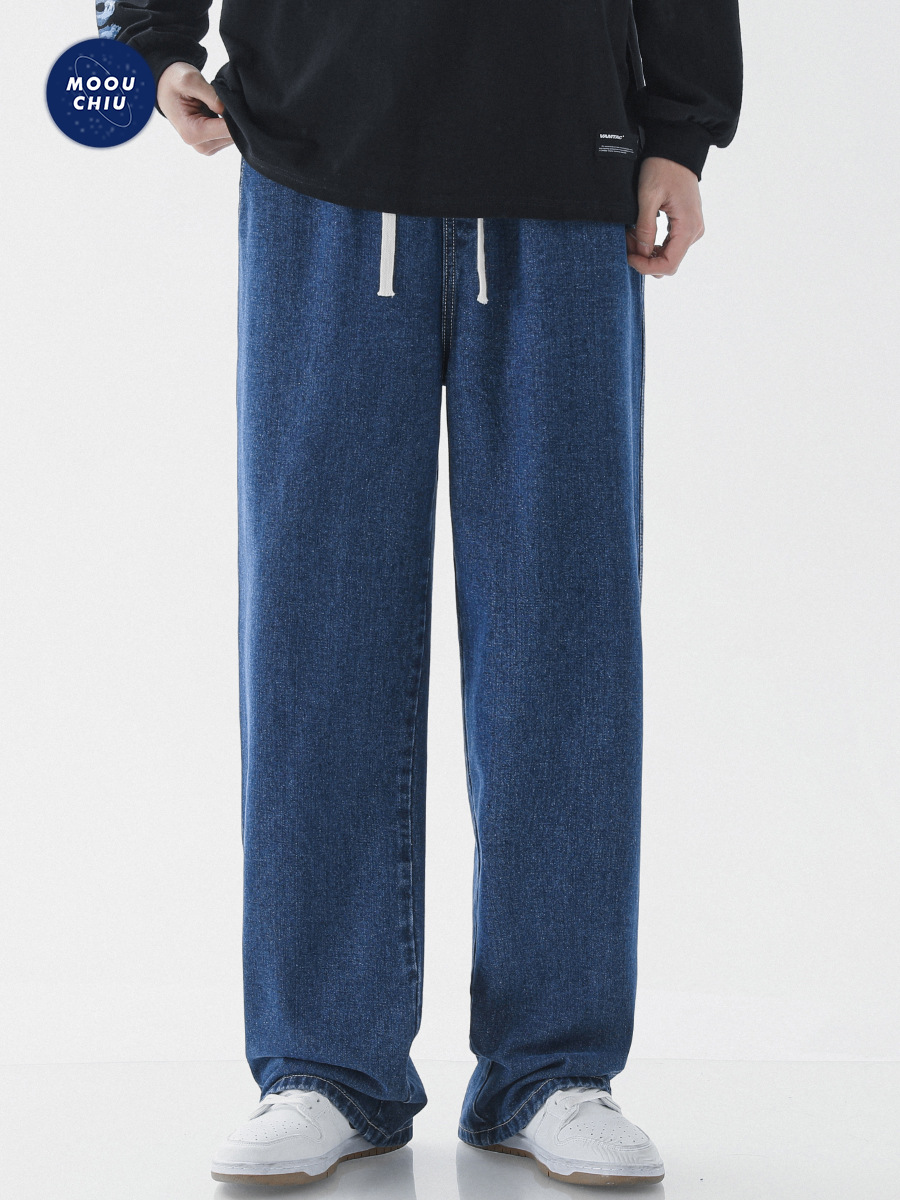 Главная страница > Мужская одежда Muqiu | Мужские джинсы Xintang на флисовой подкладке, утолщенные, свободные, прямого кроя, с эластичным поясом, повседневные широкие брюки в стиле стритстайл