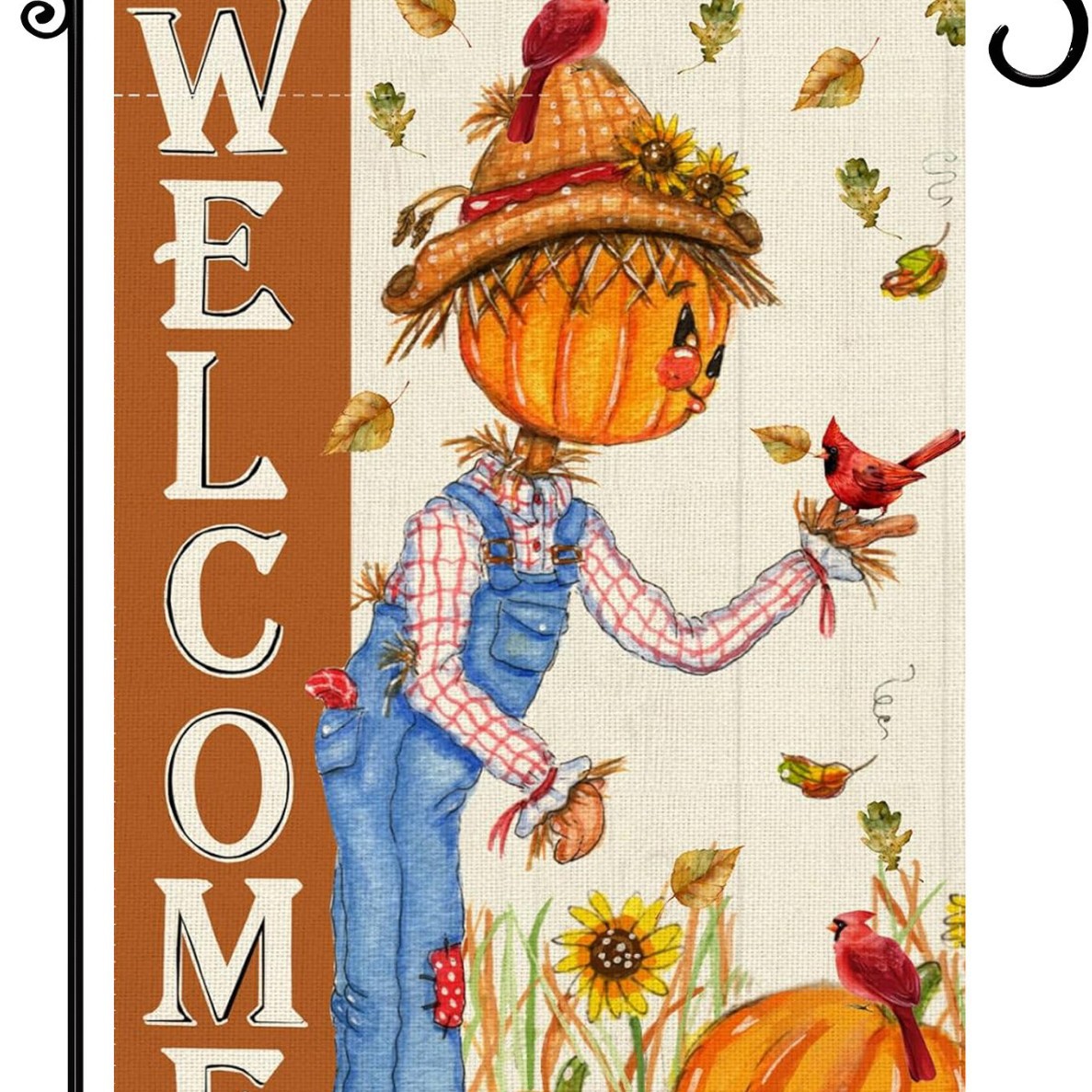 Флаг-пугало с акварельной расцветкой, двусторонняя печать, для сада, двора, фермы, декоративный, популярный на TEMU, осенняя коллекция.