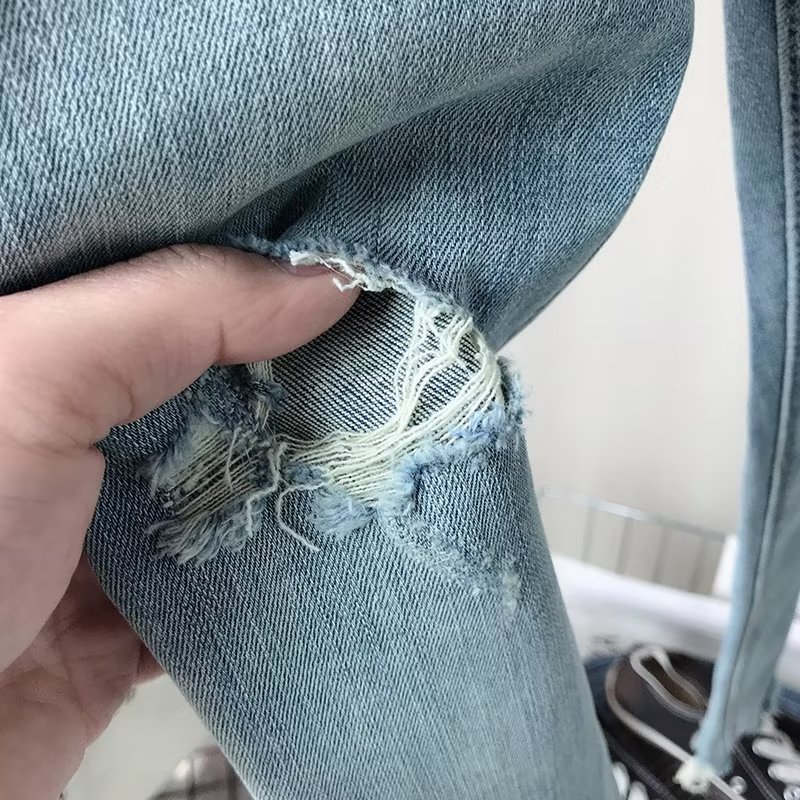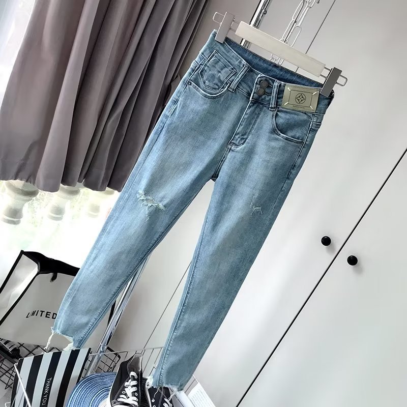 Главная страница > Винтажные ностальгические универсальные осенние тонкие рваные джинсы, женские новые эластичные облегающие укороченные брюки для похудения