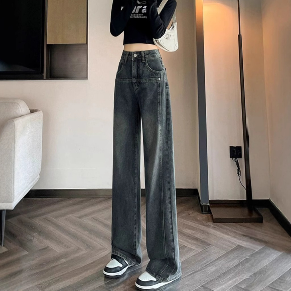 Главная страница > Толстая сестра цементно-серый ретро узкие прямые джинсы женские осенние и зимние большие размеры женские высокие талии тонкие широкие брюки