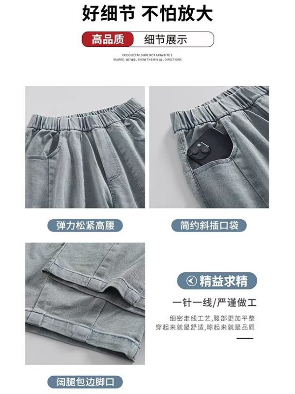 Главная страница > Укороченные джинсы Tencel для женщин, летний тонкий стиль 2025, новые прямые брюки-шаровары с высокой талией из ледяного шелка для миниатюрных размеров