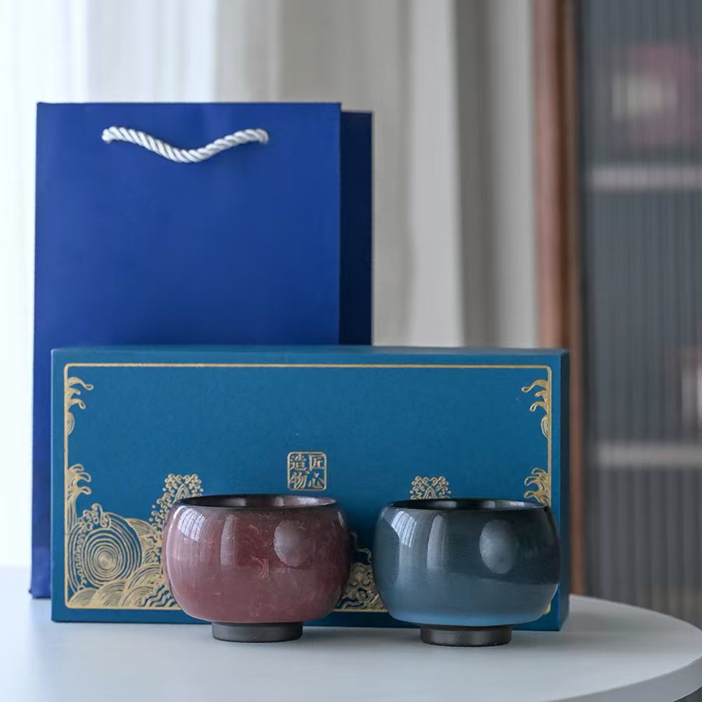 Черный лед дзен Ding Пара чашек Подарочная коробка