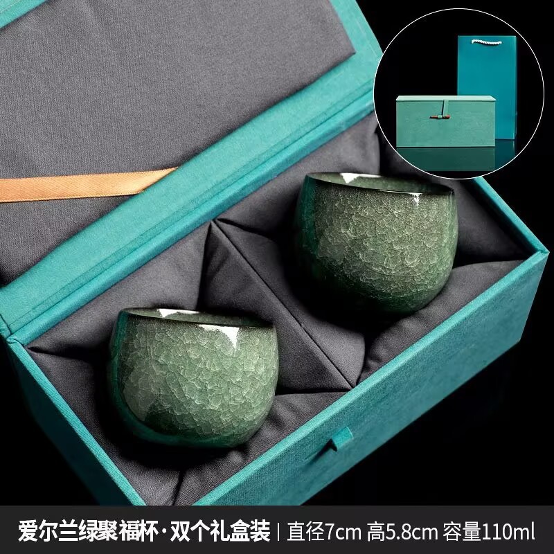 Зеленый лед дзен Ding Пара чашек Подарочная коробка