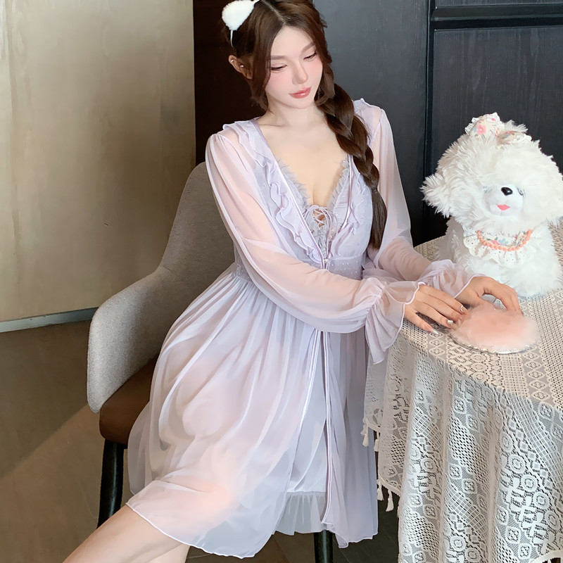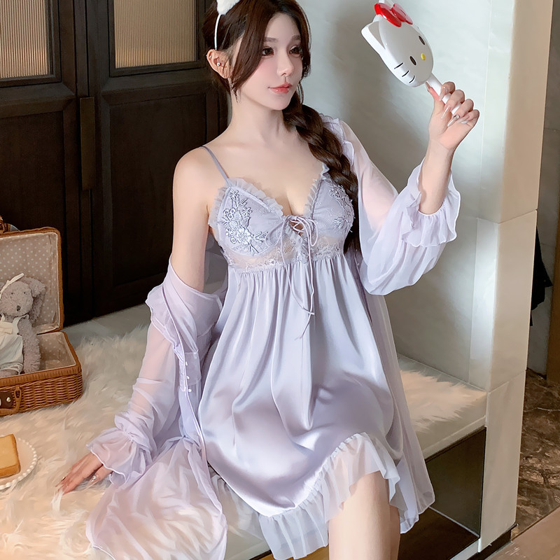 9933-6155 Ночная рубашка и ночная рубашка комплект из двух предметов фиолетового цвета