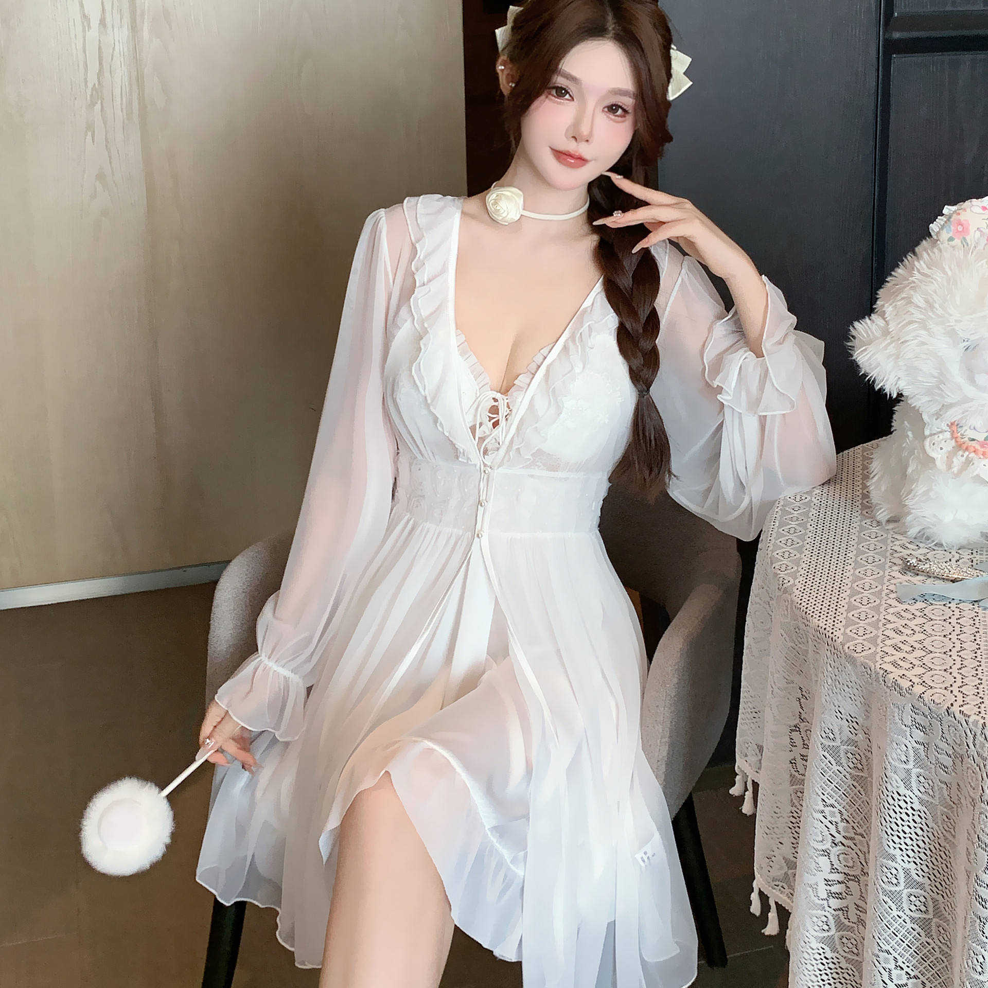 9933-6155 Ночная рубашка и ночная рубашка комплект из двух предметов белого цвета