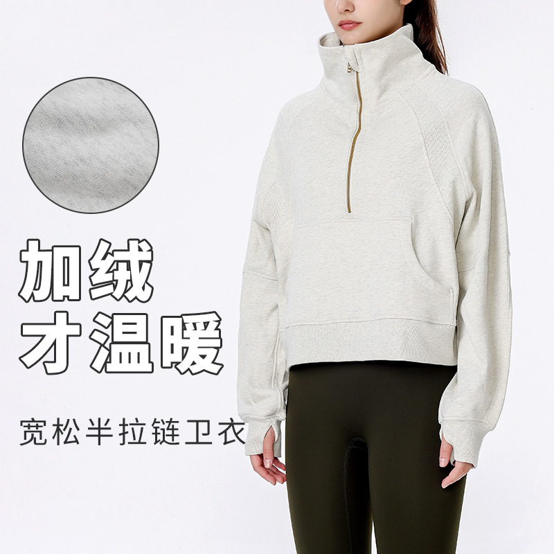 Главная страница > Новая осенне-зимняя толстовка с половинной молнией, женская толстовка с капюшоном, свободная модная повседневная одежда из чистого хлопка с капюшоном, утолщенная одежда для фитнеса и йоги