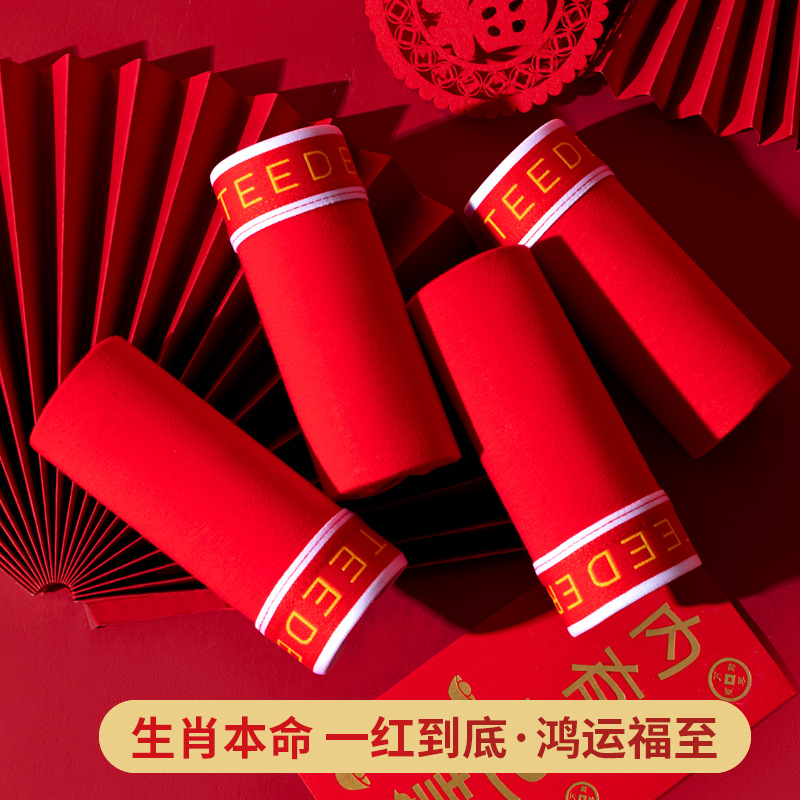 Красное зодиакальное год змеи, хлопковое мужское нижнее белье, боксеры из чистого хлопка, большие размеры 7А, антибактериальные боксеры, свадебное торжество
