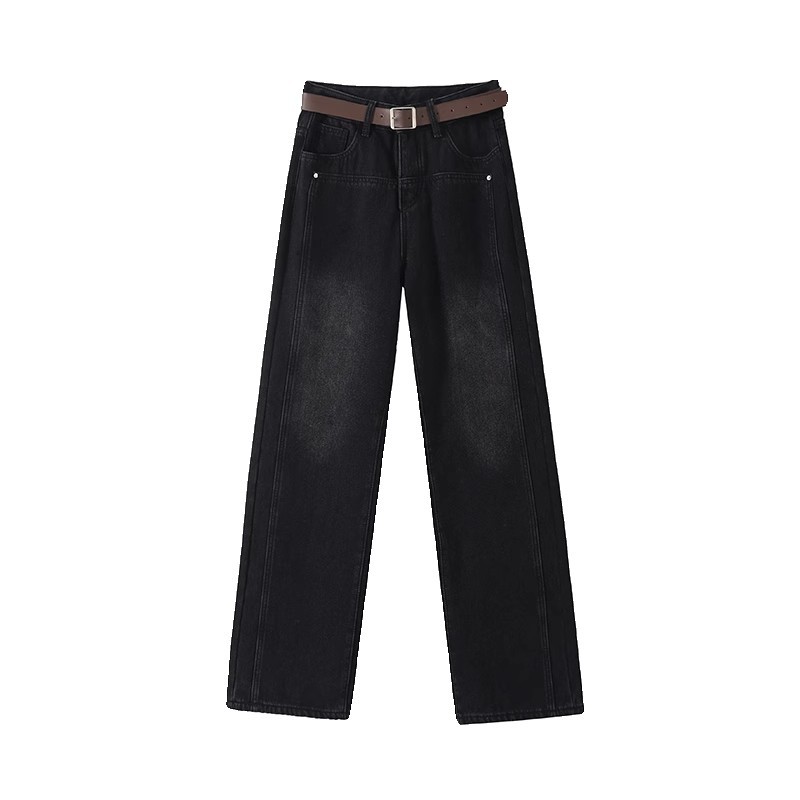 Главная страница > Черно-серая широкая ножка джинсы женская мода дикая новая высокая талия тонкая свободная большая версия ретро узкие прямые брюки