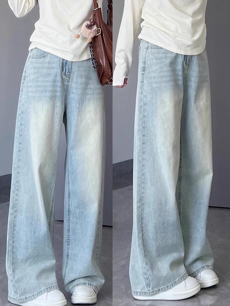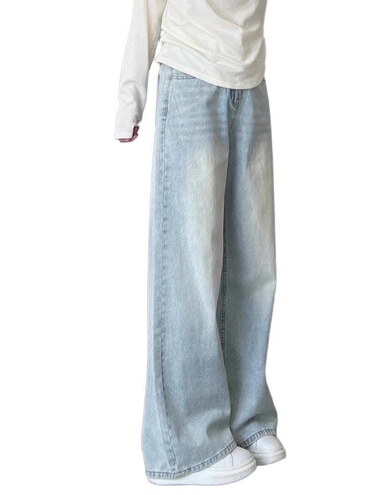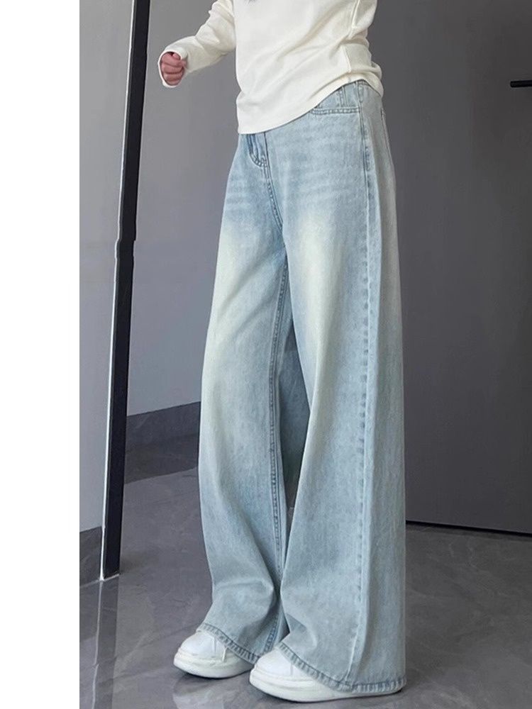 Главная страница > Светло-голубые прямые джинсы для женщин, новый весенне-летний стиль, свободные широкие брюки больших размеров с драпировкой и высокой талией.