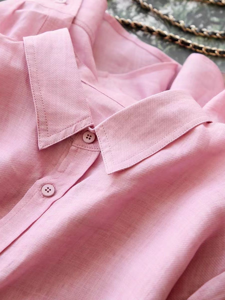 Сухая розовая пудра!! Легкая, дышащая рубашка из рами свободного кроя с длинными рукавами, солнцезащитная рубашка для женщин, новинка весна-лето 24, осветляет цвет лица.