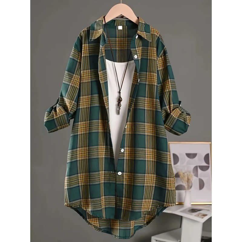 Главная страница > Европейская и американская женская рубашка большого размера из хлопка и льна в клетку, с длинным рукавом, повседневная, удлиненная, модная свободная рубашка-куртка с клетчатым узором.