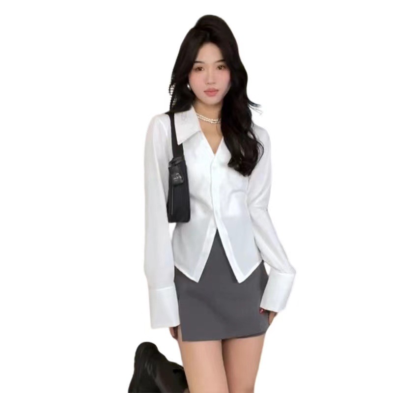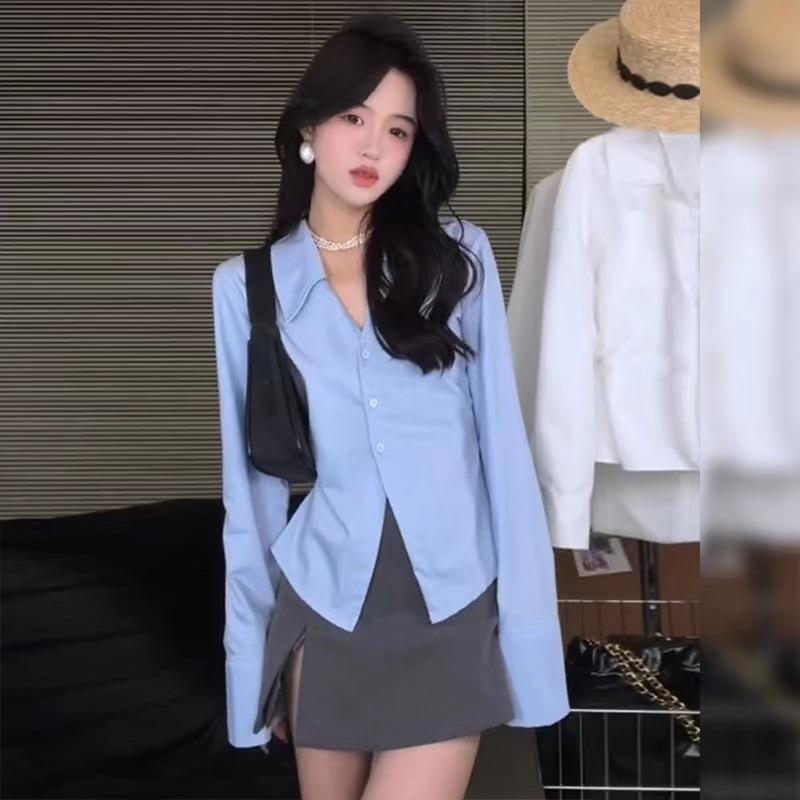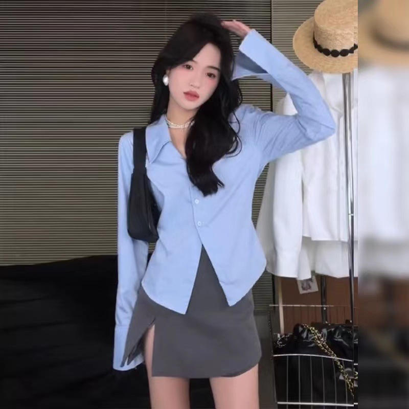 Главная страница > Рубашка с корейским дизайном, женская рубашка, новый весенне-осенний короткий топ для горячих девушек с завязкой талии во французском стиле