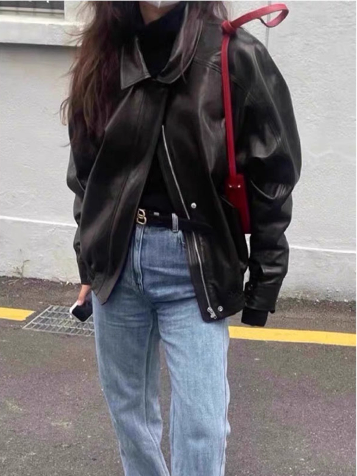 Главная страница > n*thing w*itten 25 весенняя новая кожаная куртка женская свободная однобортная куртка с лацканами и длинными рукавами