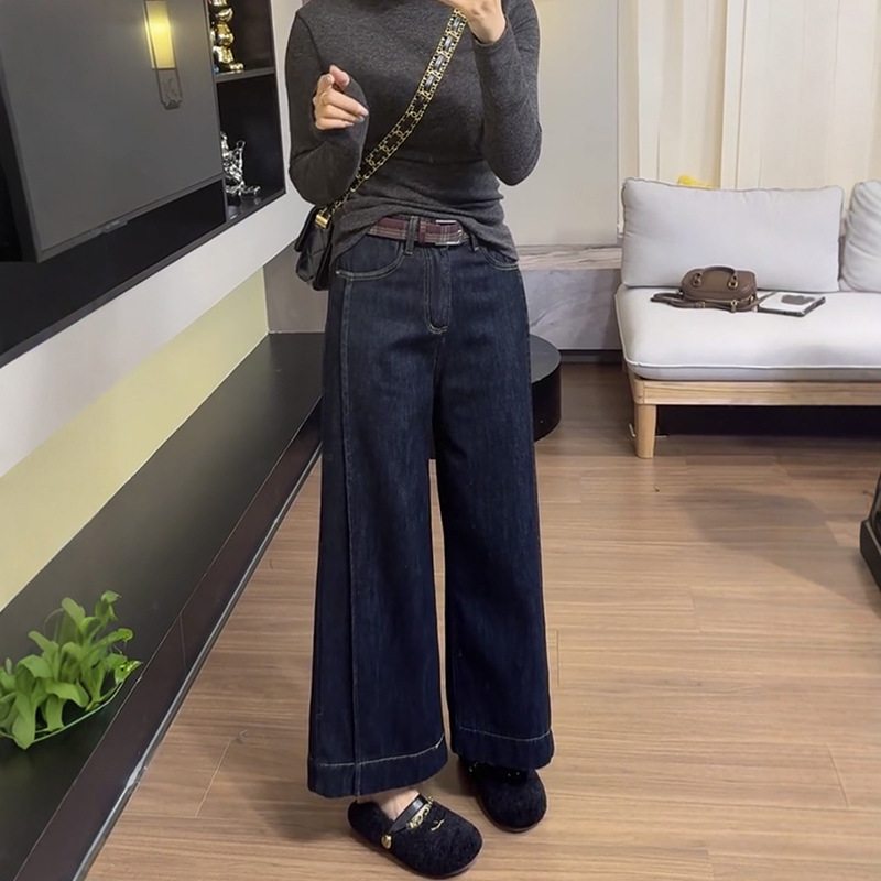 2024 осень и зима новые грушевидные прямые джинсы женский бархатный толстый большой размер с высокой талией тонкие широкие брюки