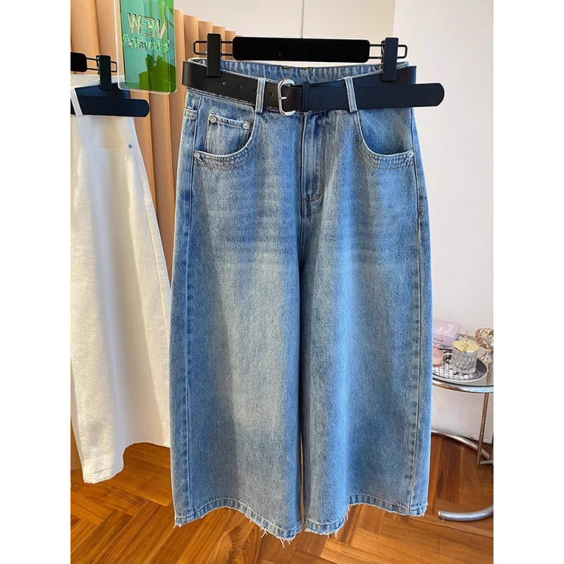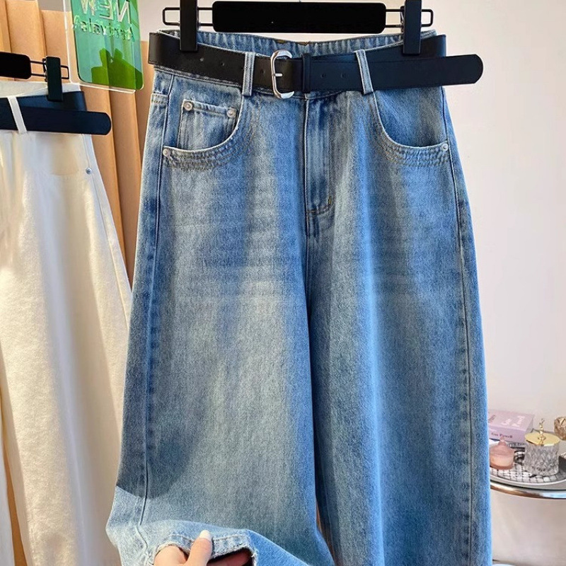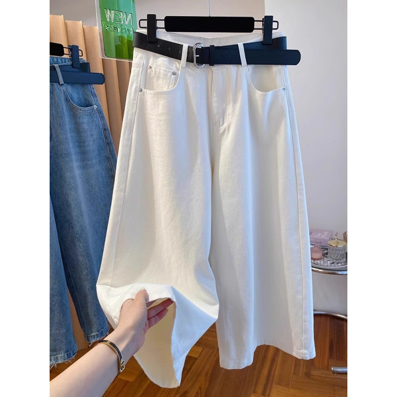 Главная страница > Модные широкие джинсы для женщин, лето 2025, тонкие универсальные укороченные брюки для похудения больших размеров