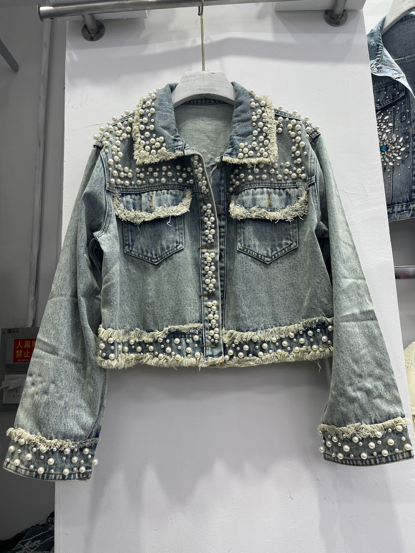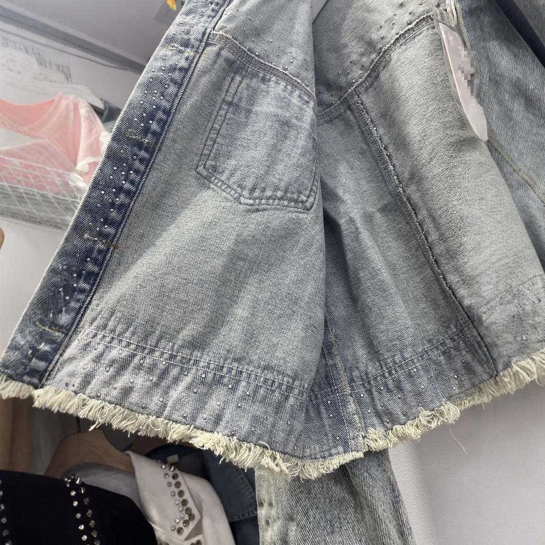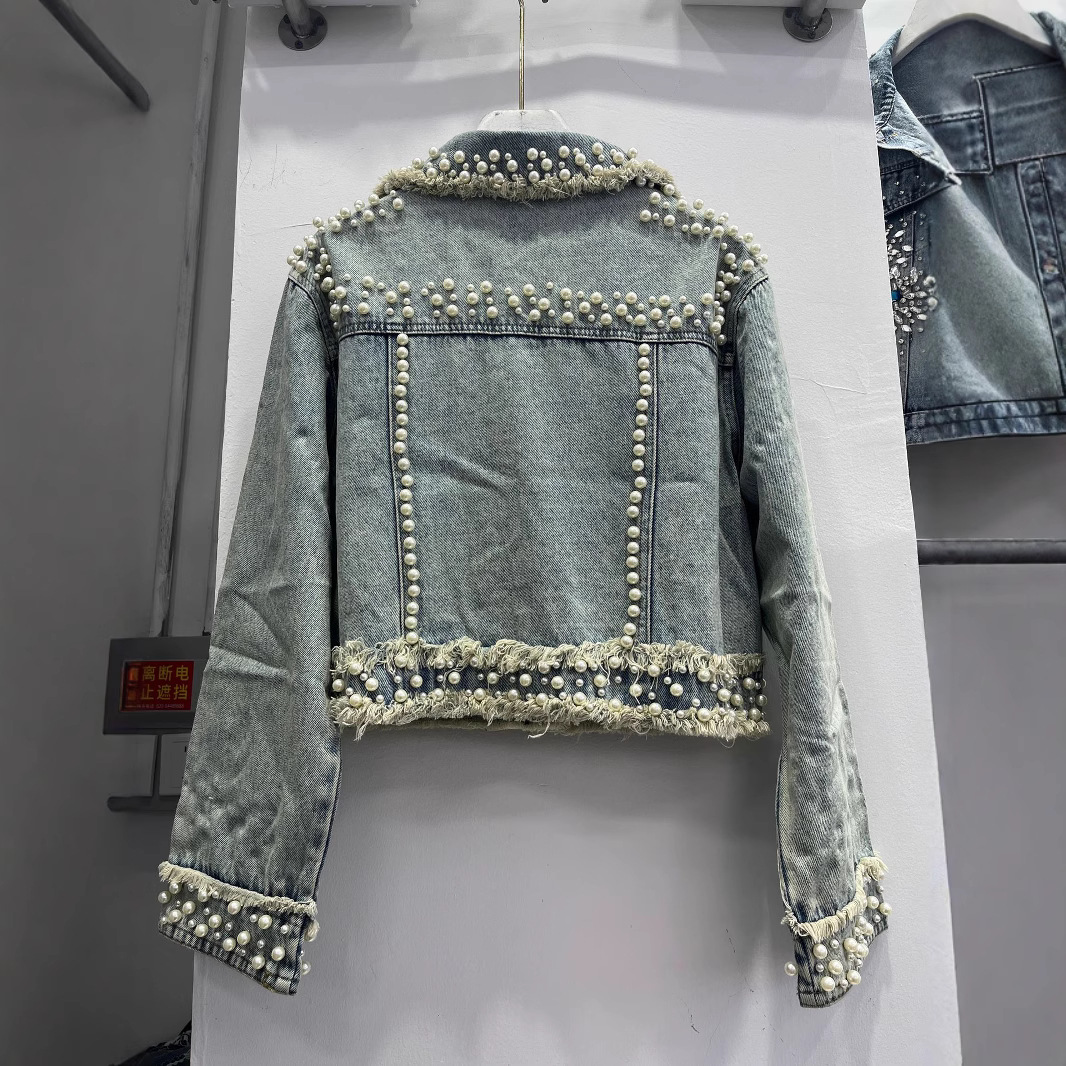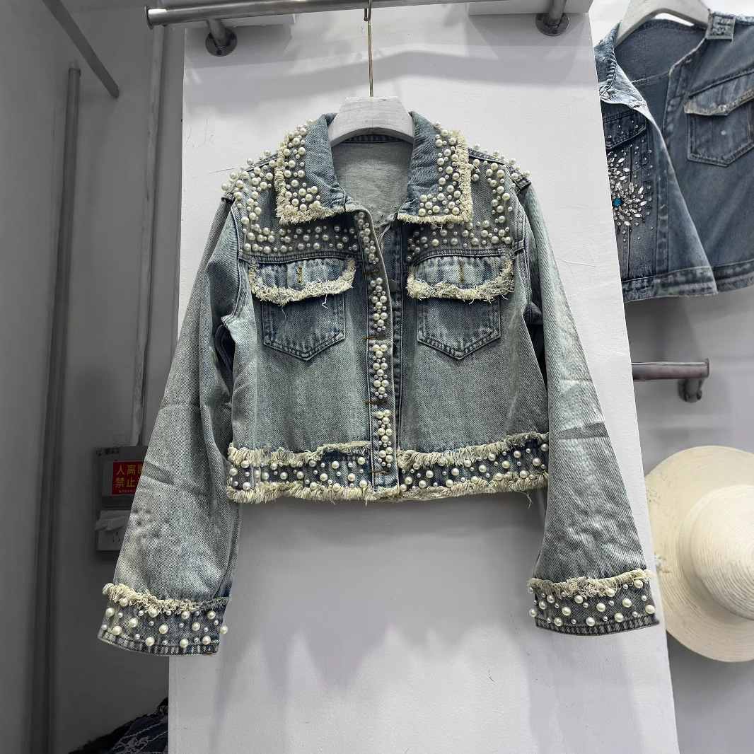 Главная страница > Европейский экспортный стиль 2025, новая осенняя свободная утягивающая джинсовая куртка с тяжелым бисером, женский топ, модный