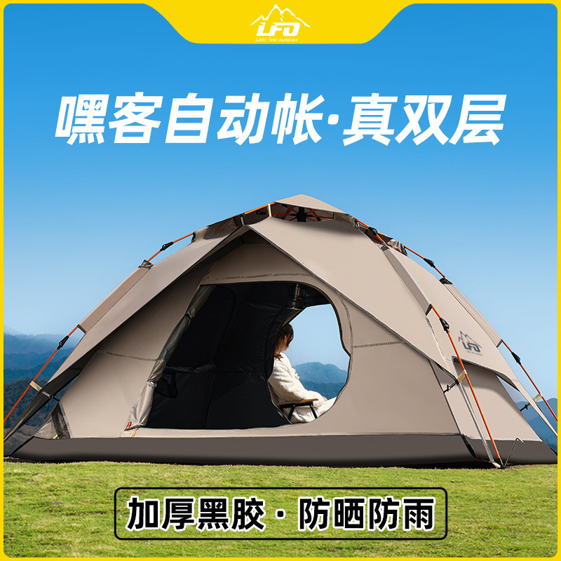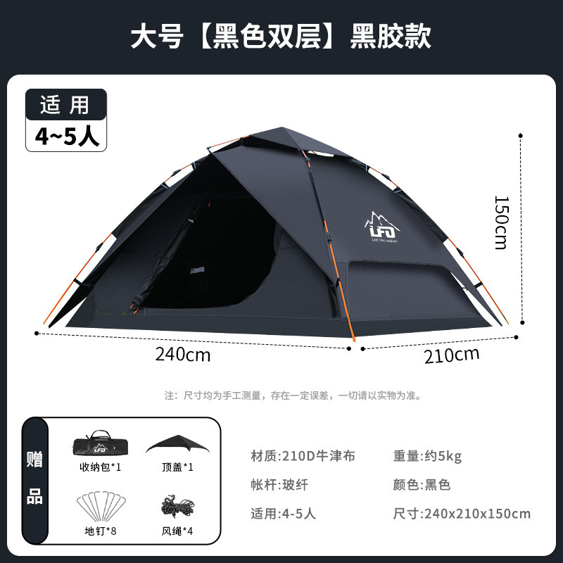Главная страница > Автоматическая палатка для кемпинга с черным покрытием, складное портативное снаряжение, двухслойная штормоустойчивая палатка для походов в дикой природе.