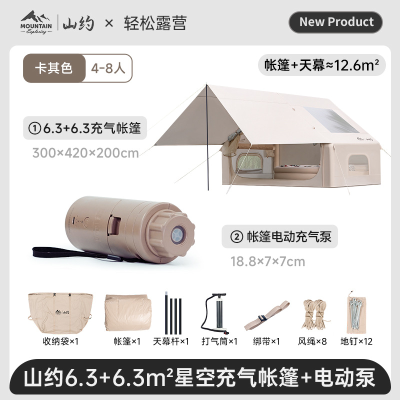 [Модернизированная модель навеса] Ткань Оксфорд [6,3+6,3 м²] Модель навеса звездного неба + автоматическая надувная кровать с подушкой + электрический насос