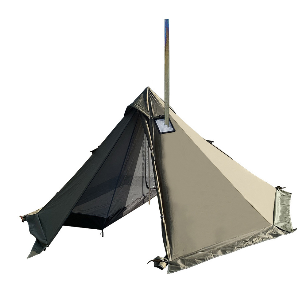 Внутренняя палатка + внешняя палатка + алюминиевый столб, негорючая непоходная юбка цвета хаки - полиэфирная ткань.