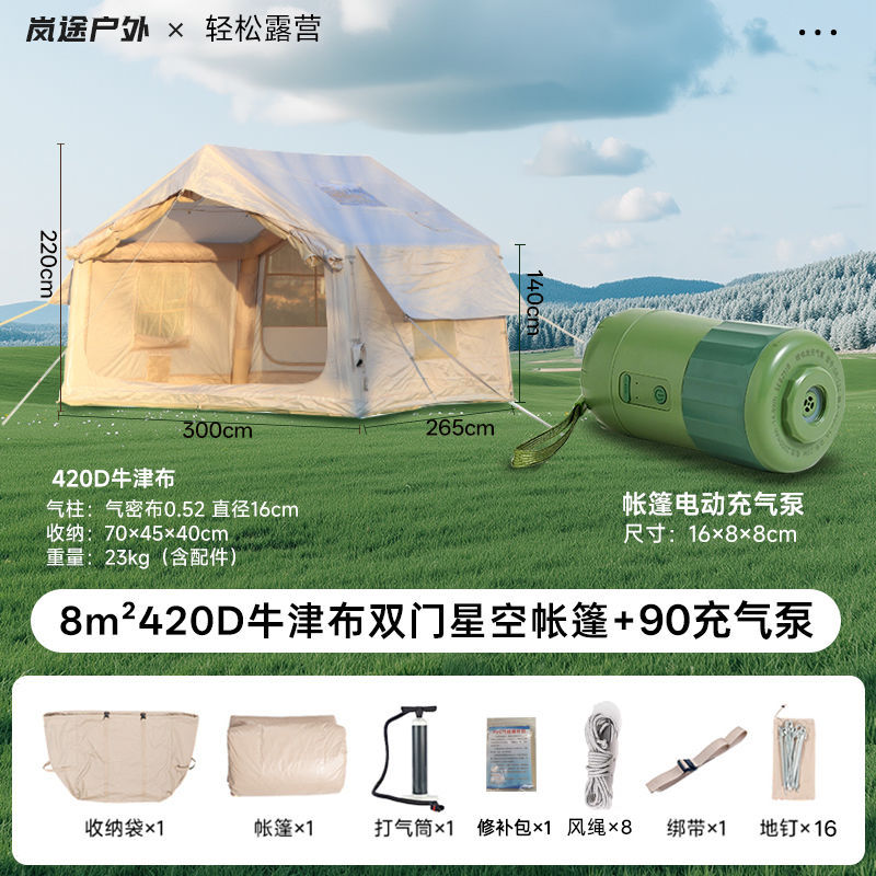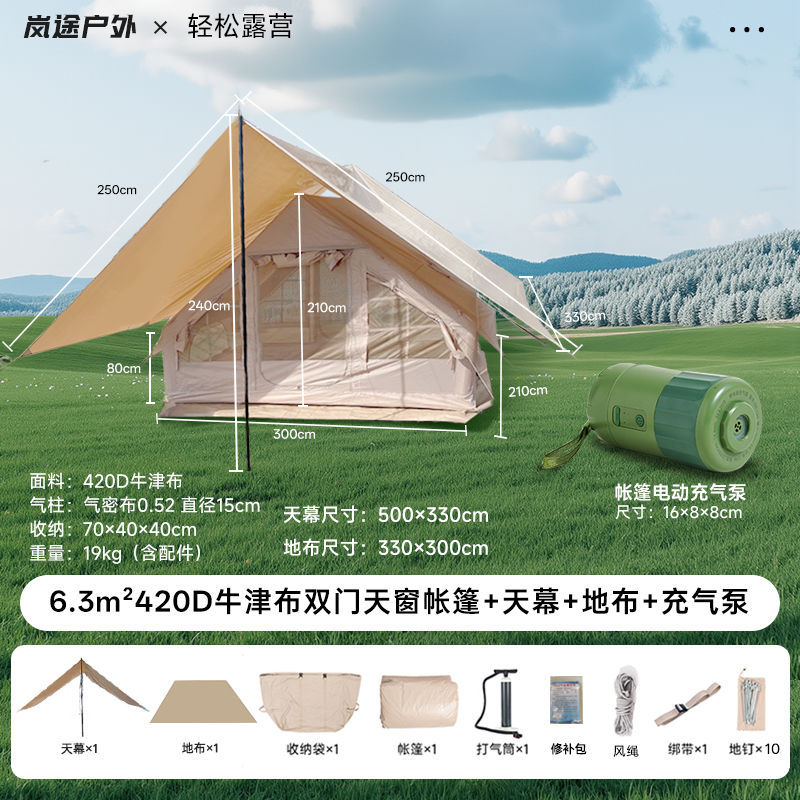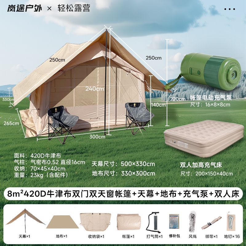 Палатка с двойным дверным люком площадью 8 квадратных метров + навес + напольная ткань + надувная кровать