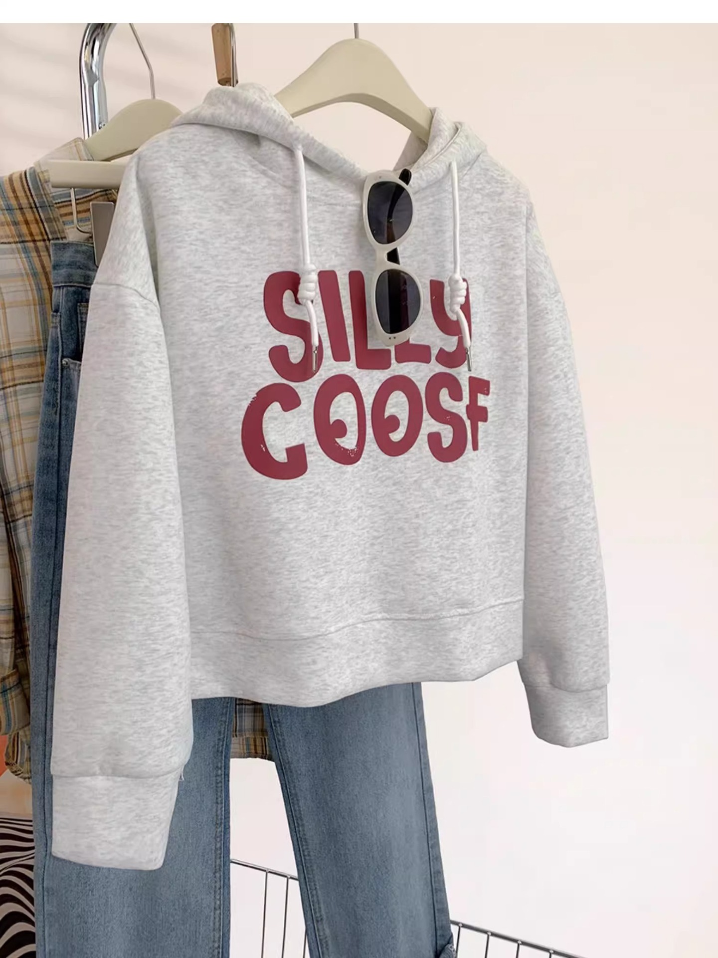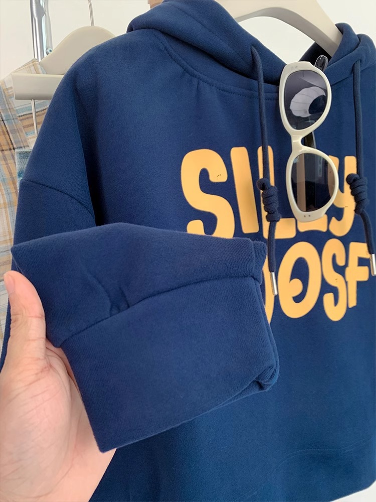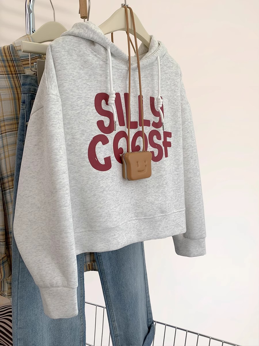 Главная страница > Американский алфавит серый свитер с капюшоном с коротким свитером женский весенний и осенний свободный ленивый ветер шляпа топ осень