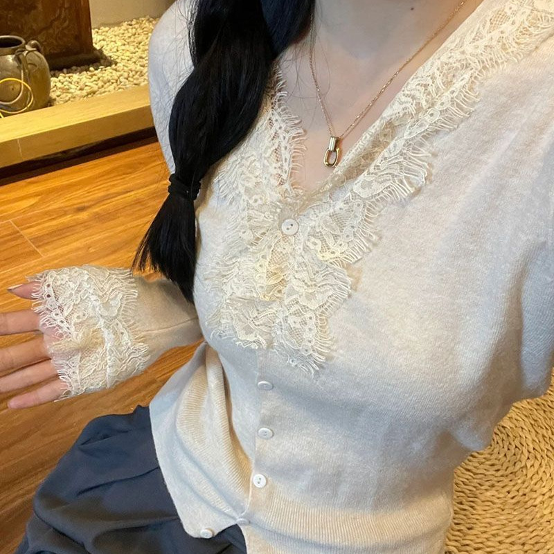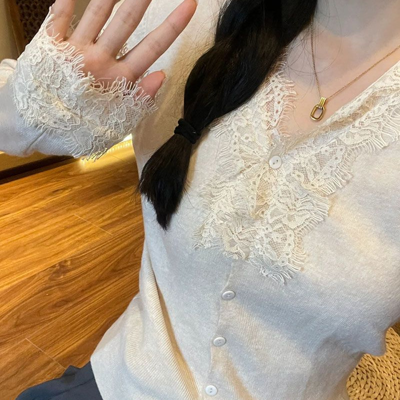 Осенний и зимний новый стиль минус иностранная леди ветер нижняя рубашка тонкая тонкая кружевная сшитая модная нишева топ женская одежда