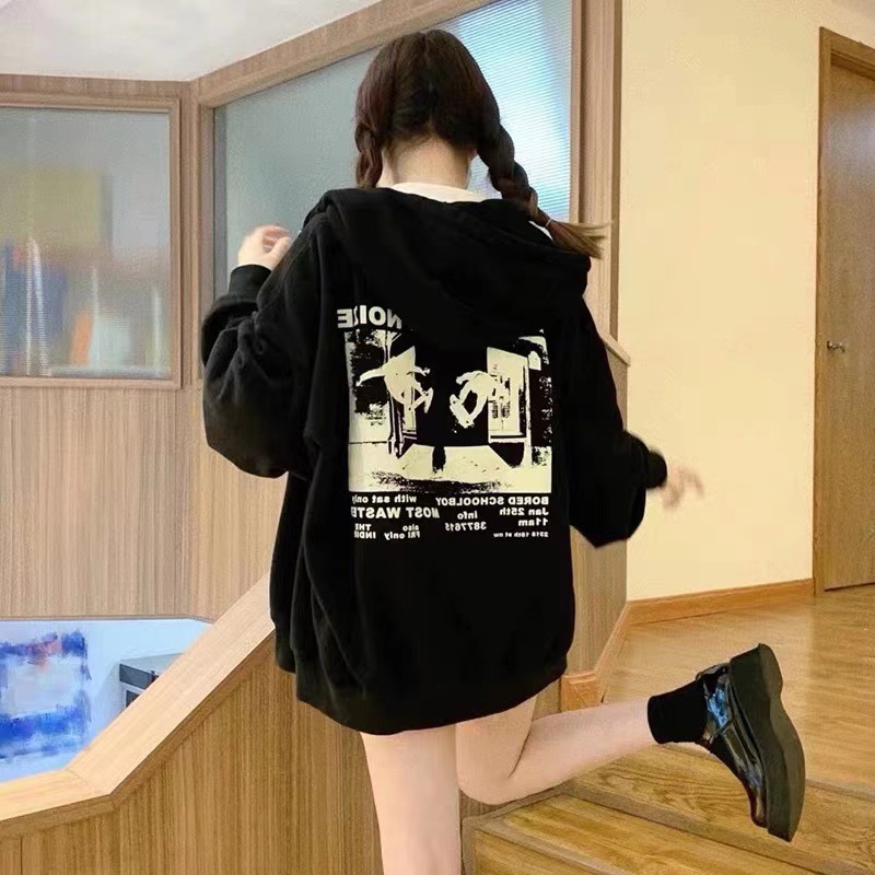 Главная страница > Женский кардиган на молнии с капюшоном и принтом в американском стиле ретро для скейтборда, свободная и универсальная большая толстовка, модный топ