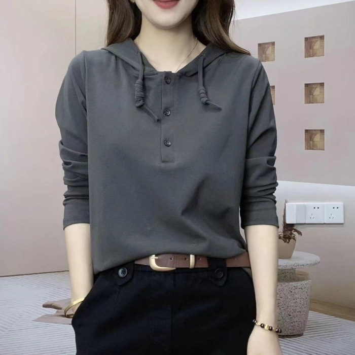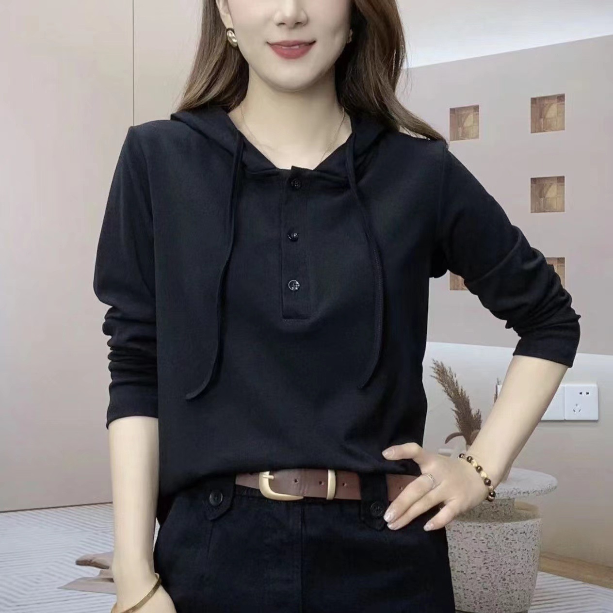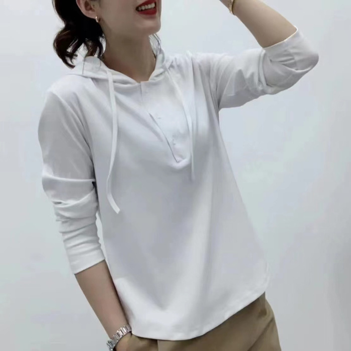 Главная страница > Женский новый свитер с капюшоном Foreign Trade, Осенний Тонкий Повседневный пуловер с покрытием живота, Женская Базовая футболка с длинным рукавом