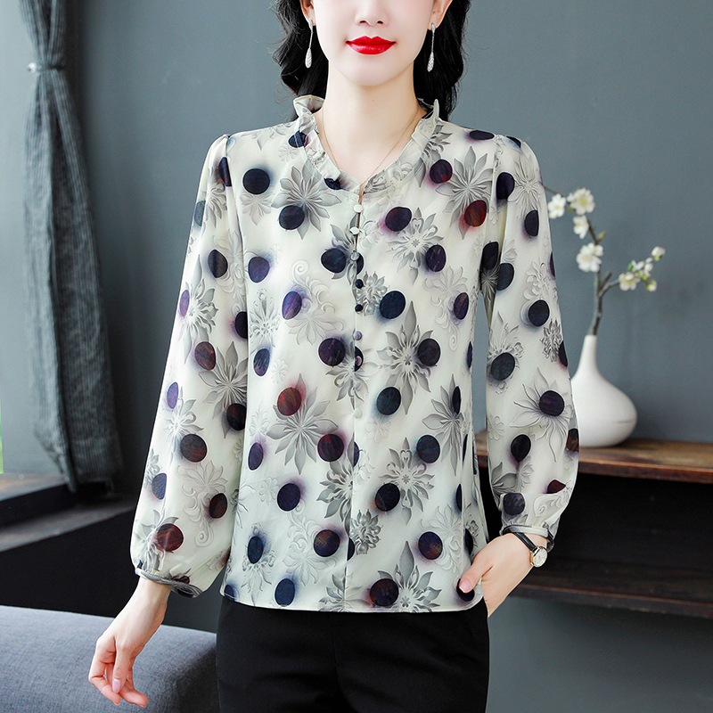 Главная страница > Печатная шелкопряда шифоновая рубашка женский топ 2024 летний новый женский принт темперамент тонкая рубашка с длинными рукавами