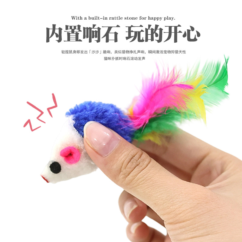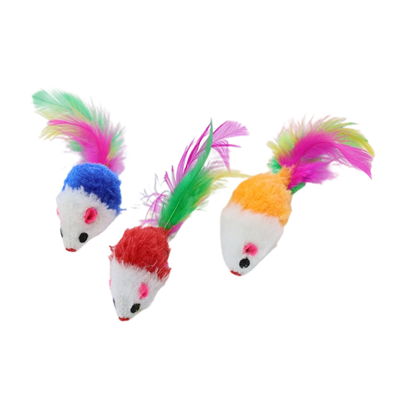 Поставки для домашних животных оптом цветные перья хвост маленькая мышка игрушка кошка реалистичная плюшевая мышь имитация мыши