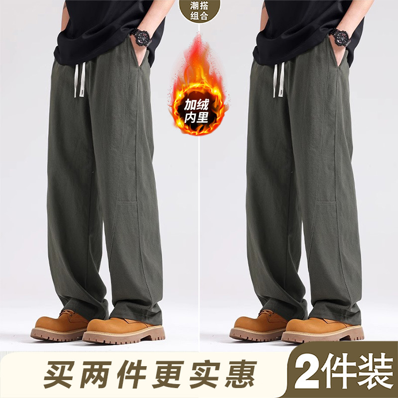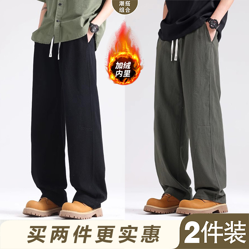 Главная страница > Мужские брюки карго из чистого хлопка, осень-зима 2025, свободные спортивные штаны, мужские прямые повседневные длинные брюки, зимние брюки на флисовой подкладке