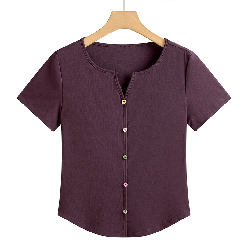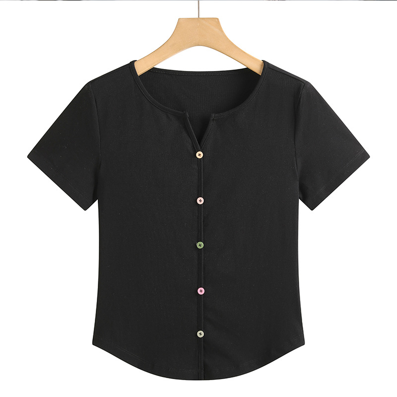 Главная страница > 2025 Новый красочный пуговица на пуговицах с короткими рукавами маленькая рубашка женская пуговица футболка дикий топ 293
