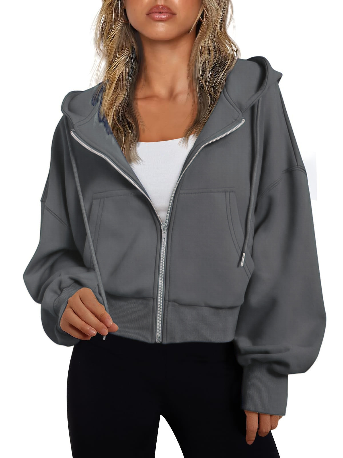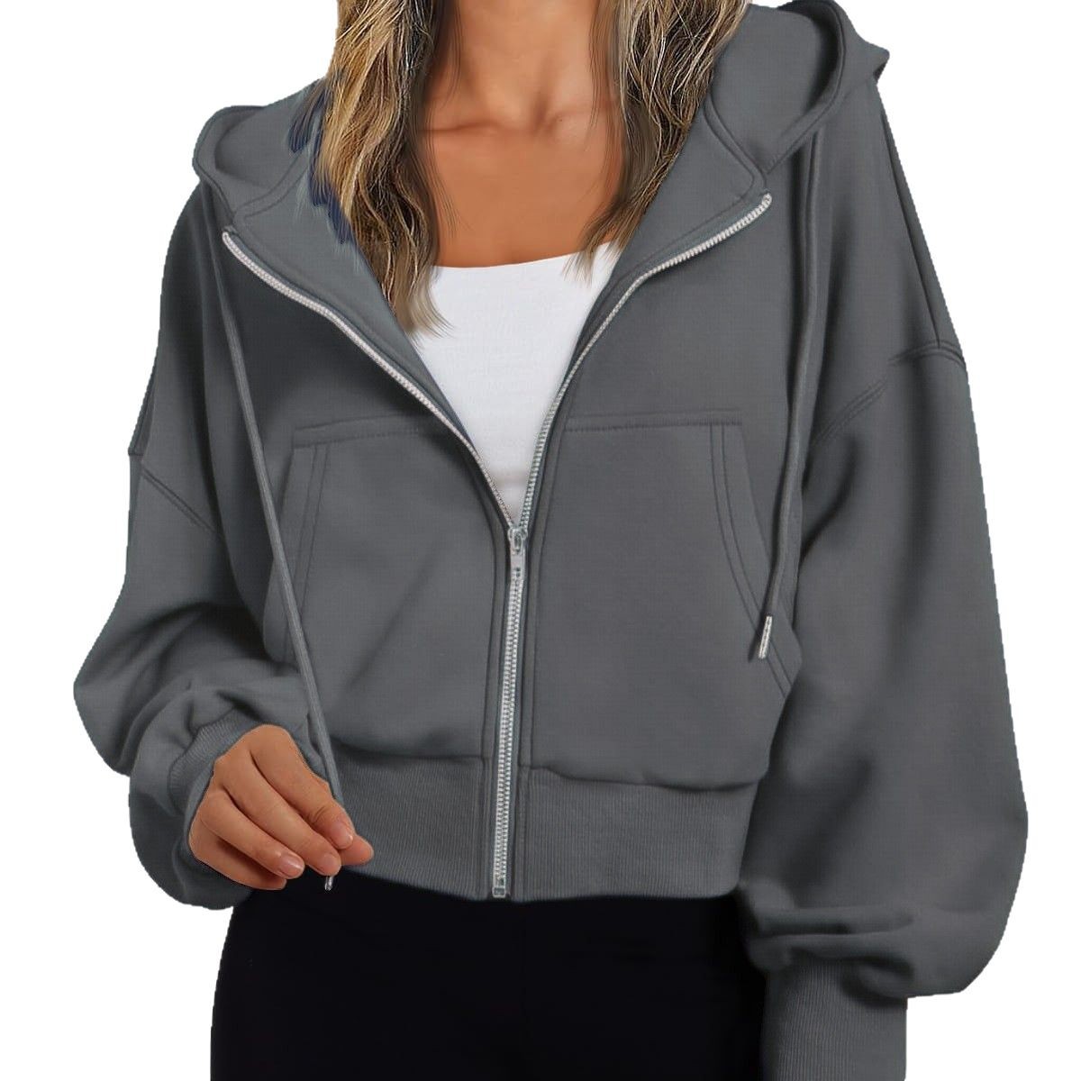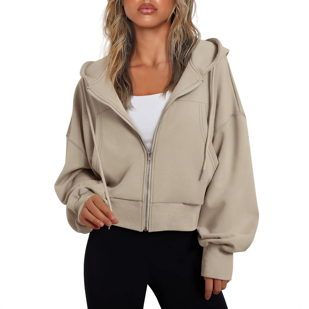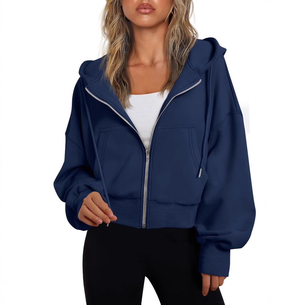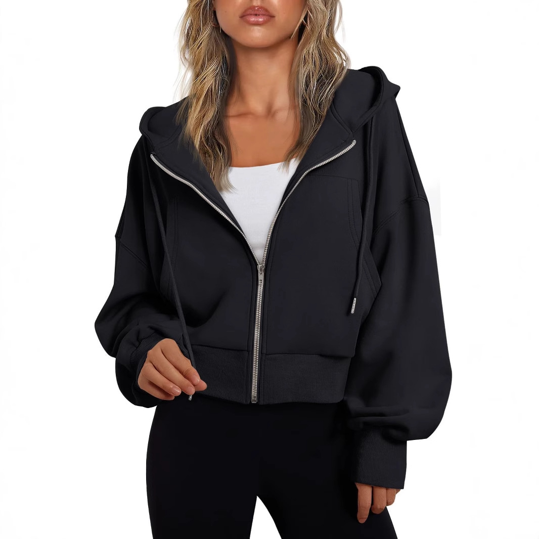 Главная страница > Amazon Европейская и американская трансграничная весенне-осенняя женская модная повседневная толстовка, короткая свободная толстовка с капюшоном, топ для спортзала