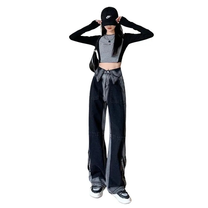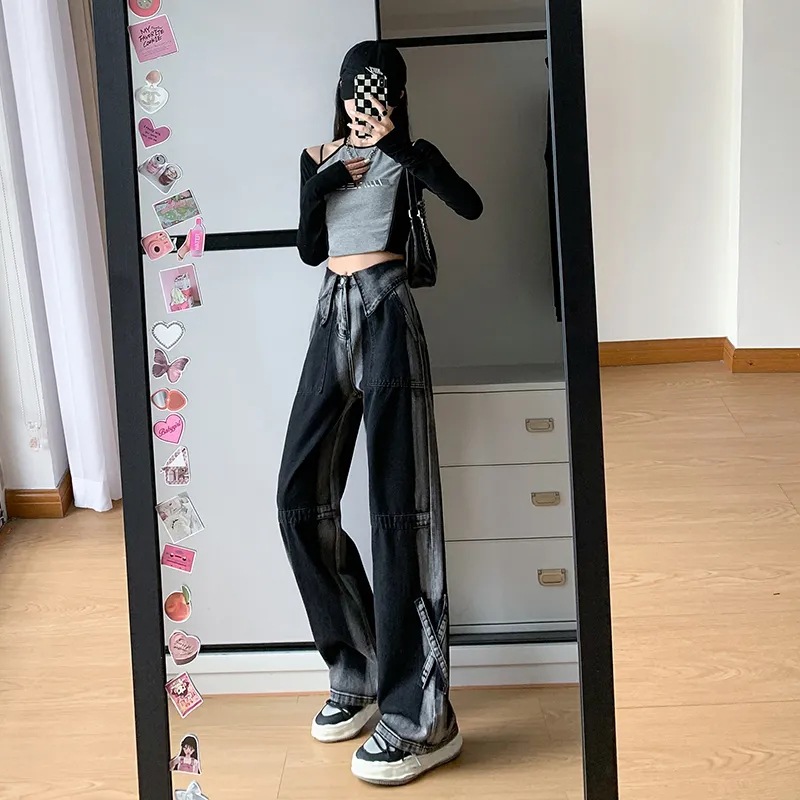 Главная страница > Женские джинсы с высокой талией и широкими штанинами в американском стиле, осень и зима 2023, Новые прямые брюки свободного дизайна с градиентом