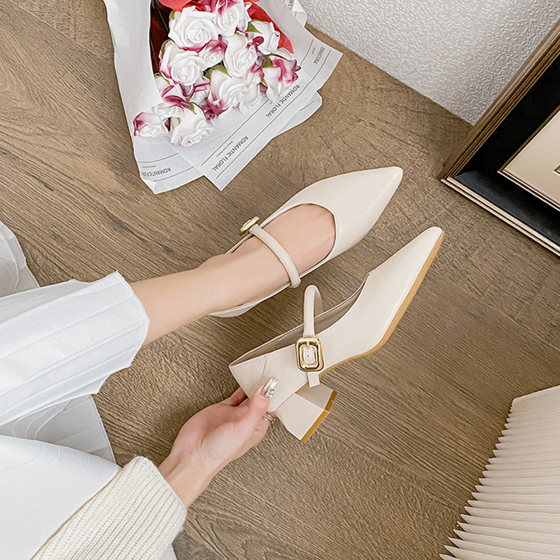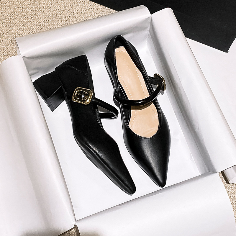 Главная страница > Женские туфли из мягкой кожи, новинка 2024, летний стиль, универсальные туфли с острым носком, мелким горлышком, толстый каблук, не умирающий ноги, французская однолинейная пряжка, высокие каблуки