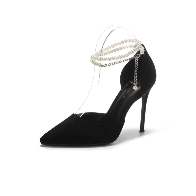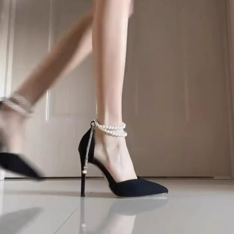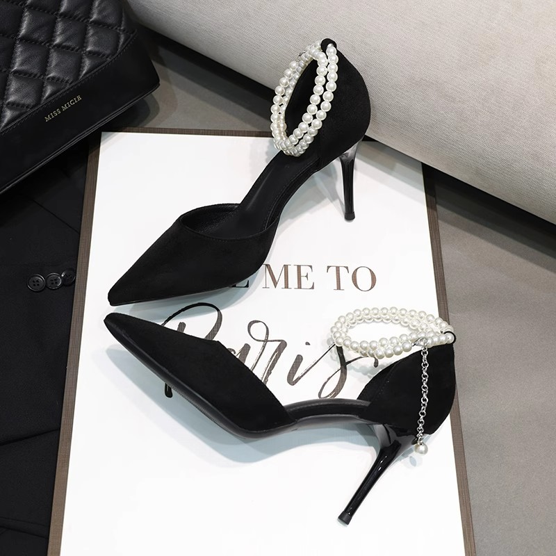 Главная страница > 2024 Новые женские замшевые сандалии на высоком каблуке с острым носком и жемчужной пряжкой, женская обувь, универсальные одиночные туфли