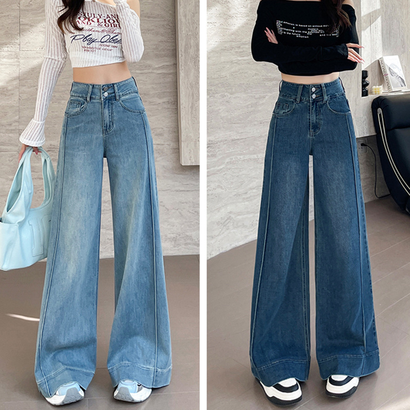 Корейские женские дикие эластичные широкие джинсы женские весенние и осенние тонкие девятицентные трусики