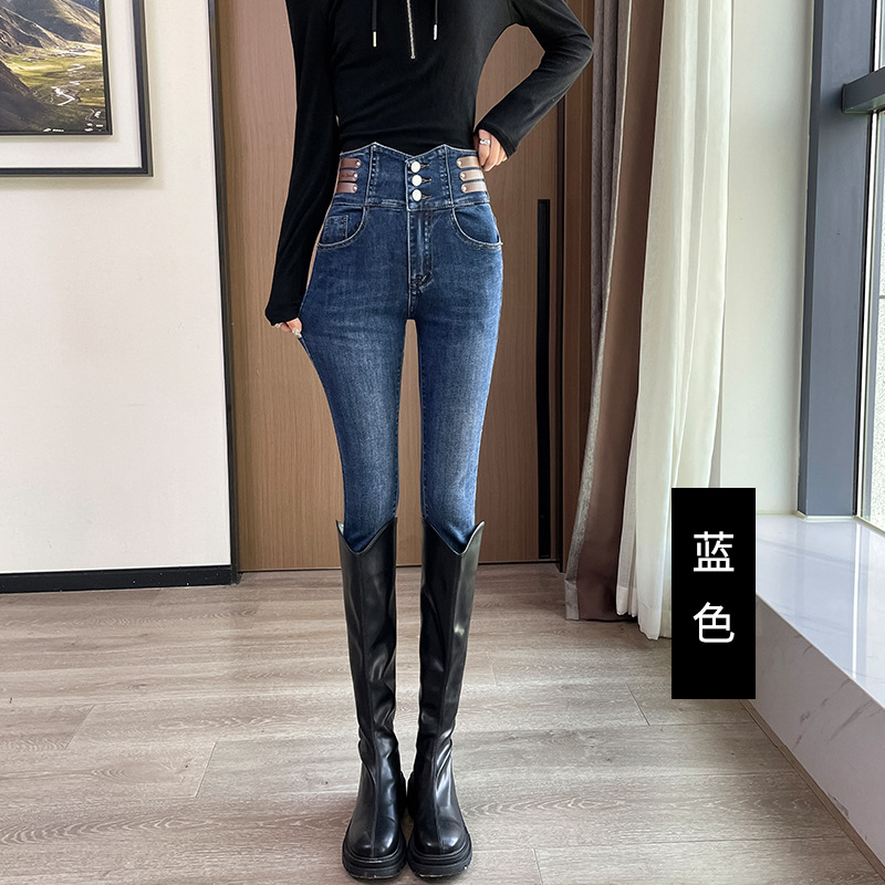 Главная страница > Сверхвысокая талия синие джинсы женские узкие тонкие брюки