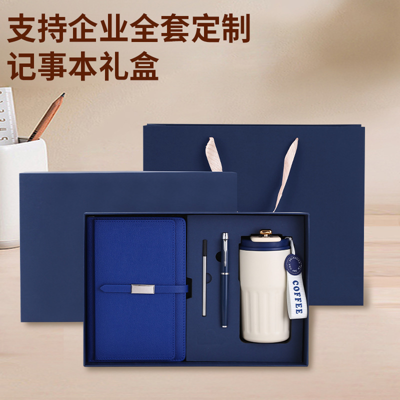 Синий [Бизнес-блокнот + цифровая кофейная чашка на 450 мл + ручка для подписи] Набор