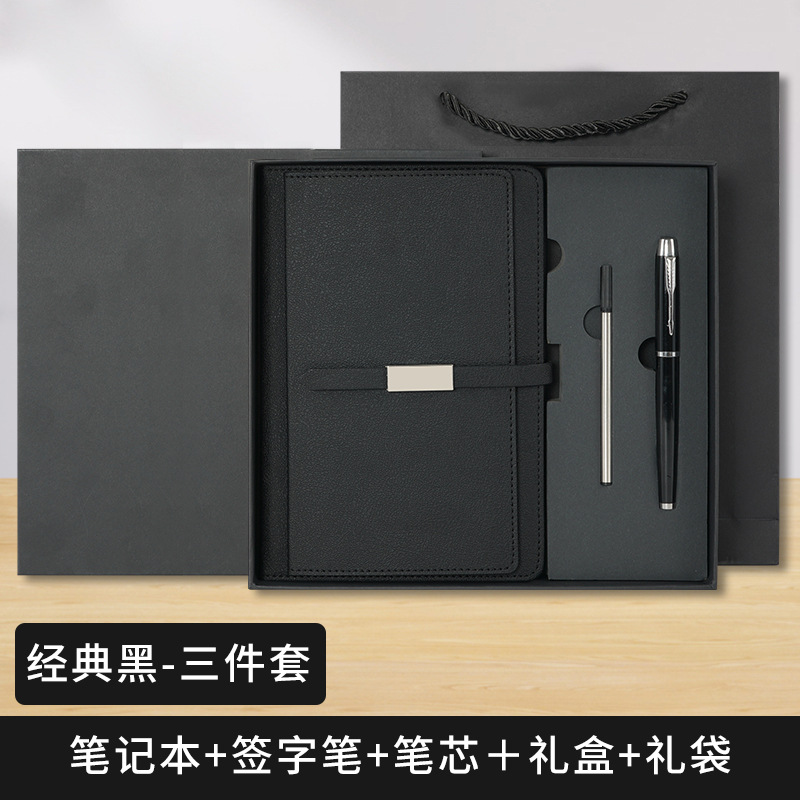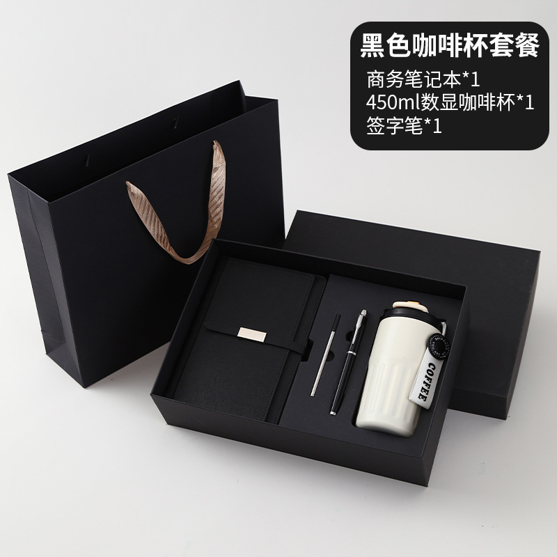 Черный набор [Бизнес-блокнот + цифровая кофейная чашка 450 мл + ручка для подписи]
