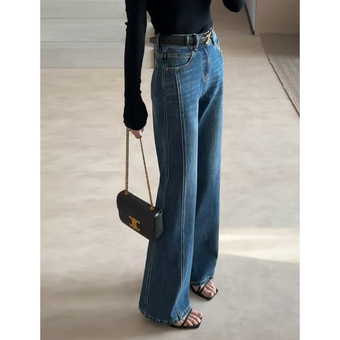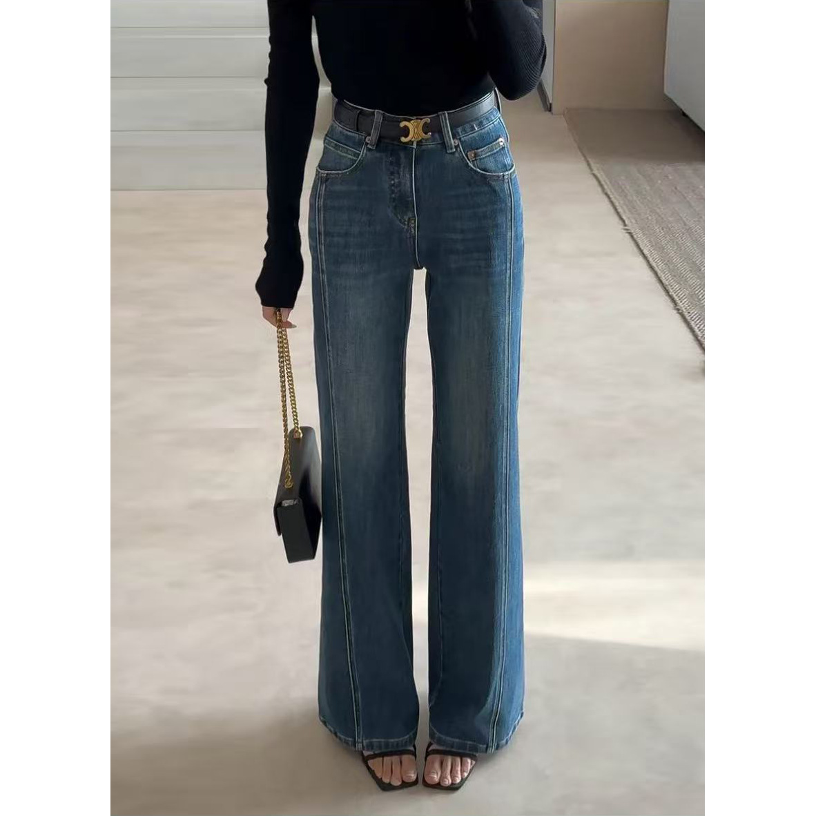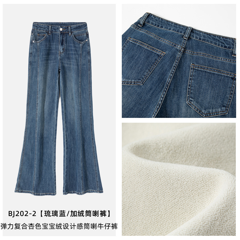 Главная страница > Джинсы-клеш для женщин, размер 25, осенне-зимние брюки на флисовой подкладке, американский стиль, цвет «стеклянный синий», в том же стиле, что и у Miina.