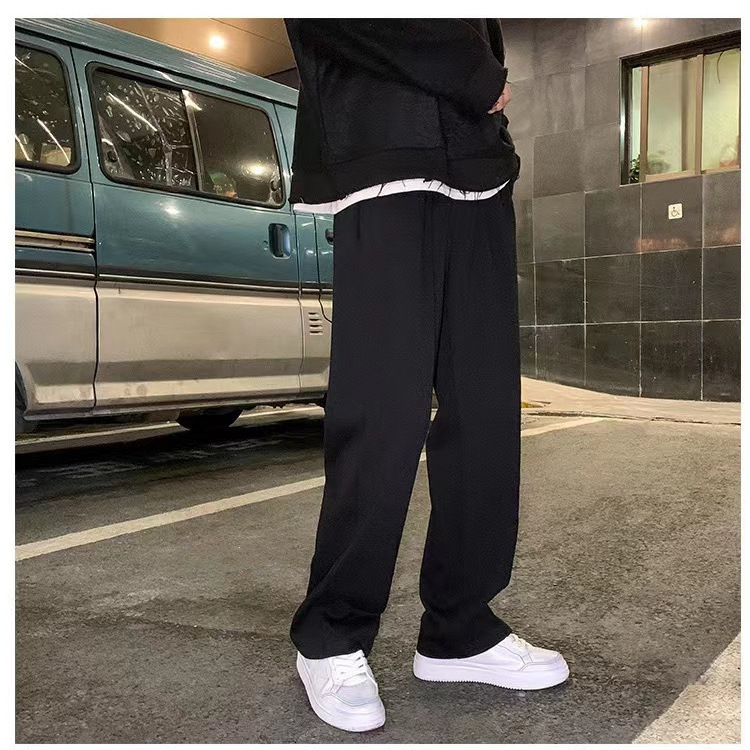 Главная страница > Новые осенние спортивные штаны, мужские свободные универсальные модные спортивные штаны на шнурке, прямые широкие студенческие повседневные штаны в Корейском стиле