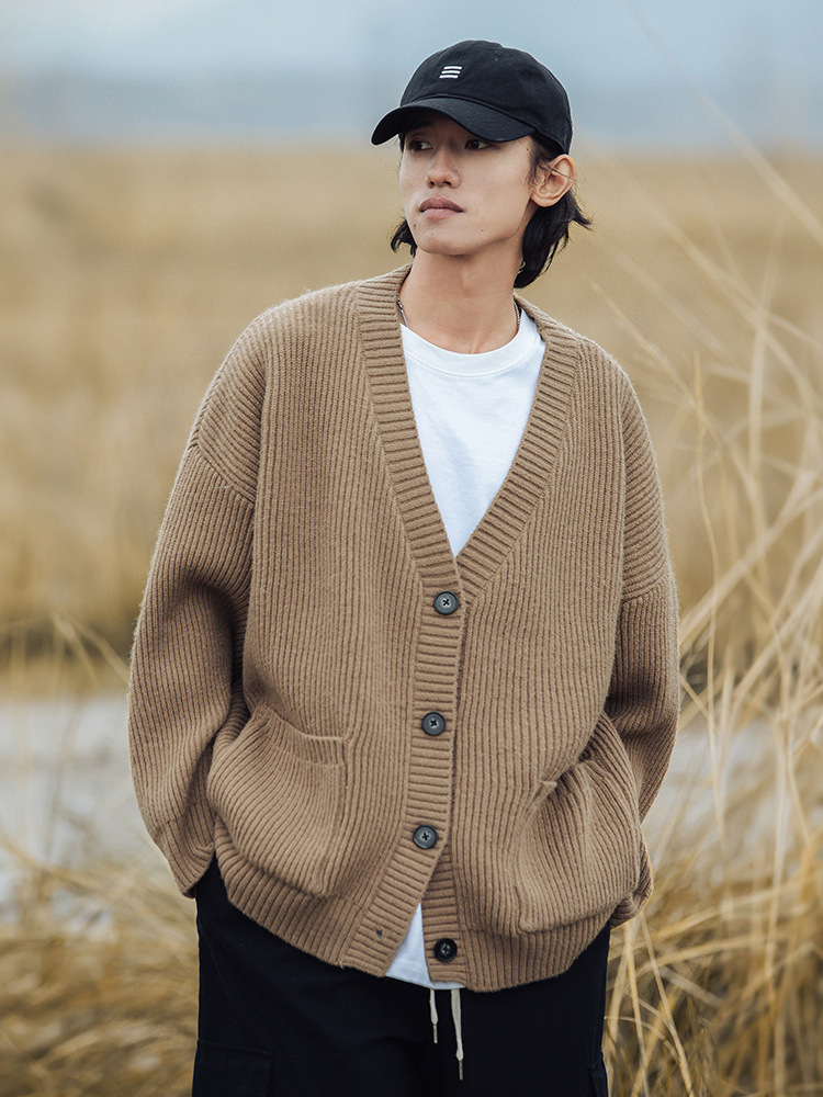 Главная страница > Текстурированный толстый вязаный кардиган для мужчин, новинка осени-зимы 2024, свободный крой, японский стиль, свитер для пар, трикотаж q
