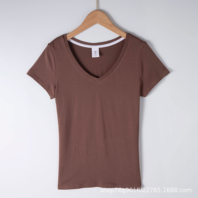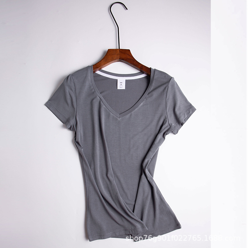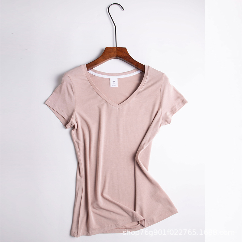 Главная страница > TR0079 Модальная женская футболка с коротким рукавом, новинка 2022 года, летняя Облегающая рубашка с коротким рукавом и V-образным вырезом