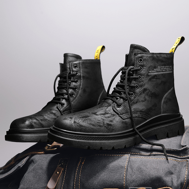 Главная страница > Мужские ботинки Martin из натуральной кожи, из первого слоя воловьей кожи, универсальные зимние ботинки с флисовой подкладкой, рабочая обувь в британском стиле, высокие мужские ботинки.