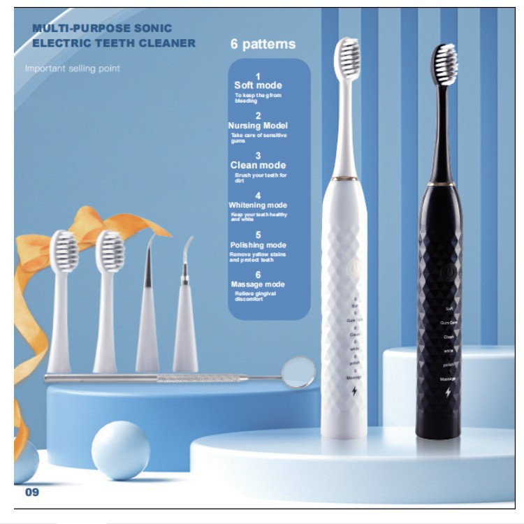 Главная страница > 6-скоростная электрическая зубная щетка с ромбовидной головкой, съемная, черно-белая, с USB-зарядкой, 7 уровней водонепроницаемости, бесщеточная, для пар