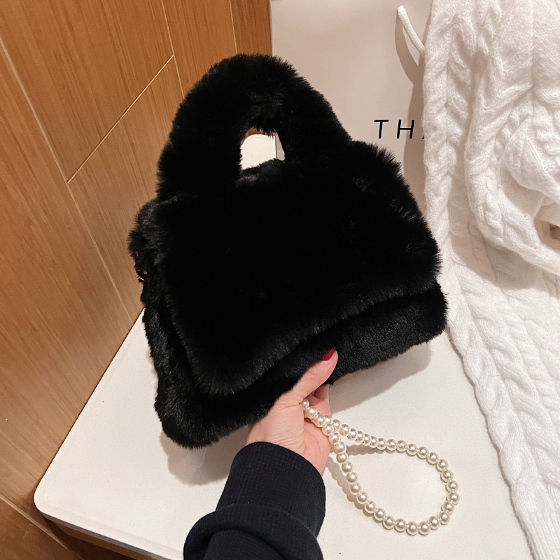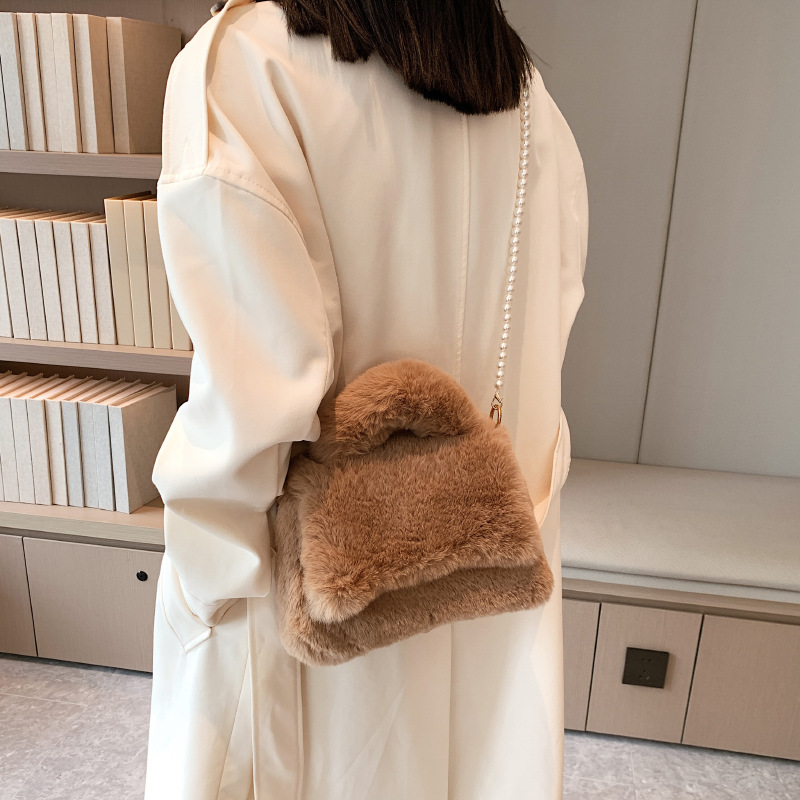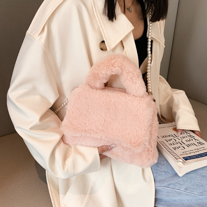 Главная страница > Мягкая сумка для женщин, модная элегантная осенне-зимняя сумка через плечо с жемчужной цепочкой, сумка-клатч в корейском стиле, пушистая сумка