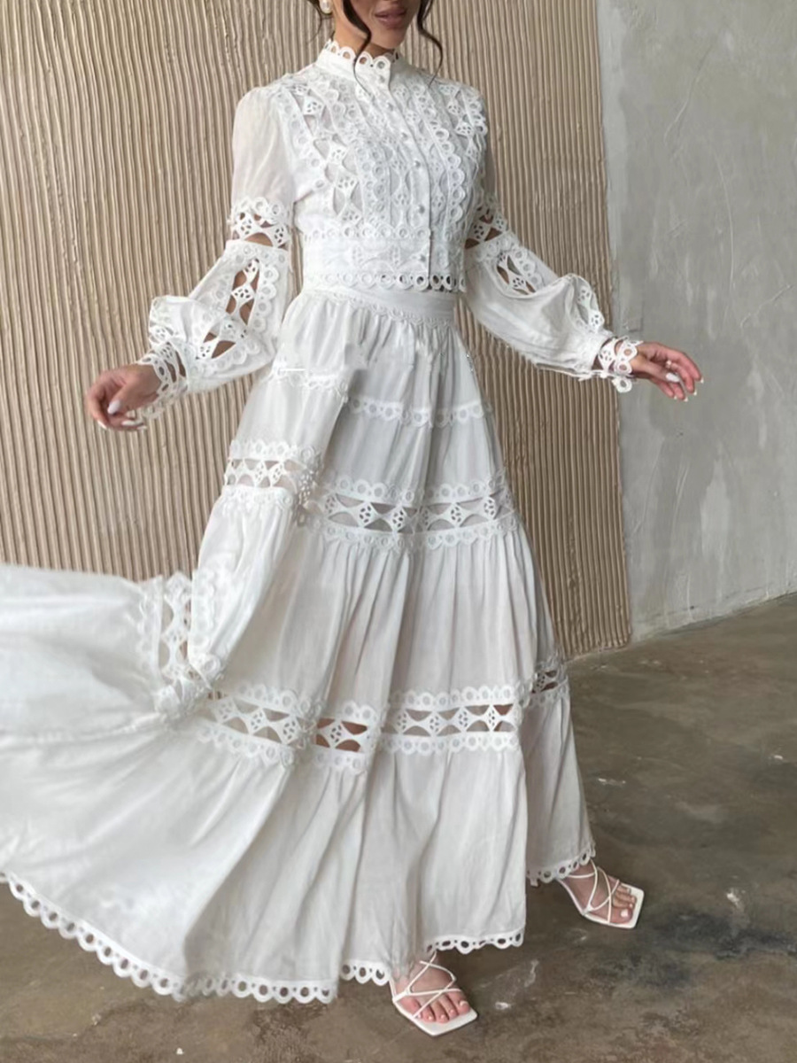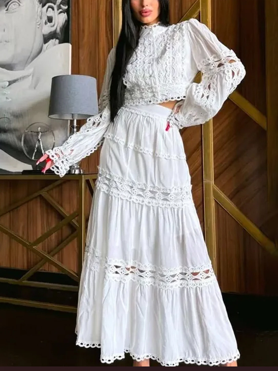 Главная страница > Новый осенний женский костюм 2025 года в стиле французского ретро-шик, с кружевной отделкой и рукавами «принцесса», однотонный